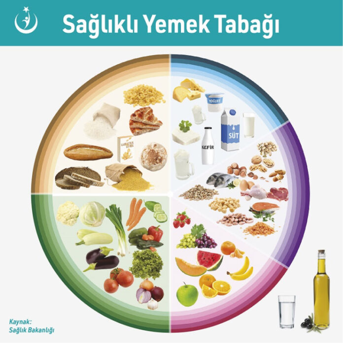 Bu tabakta 5 ana besin ögesi yer alıyor. Bu tabağın geliştirilme amacı; beslenmede çeşitliliğin önemini vurgulamaktır. Her renkten ve her yapıdan beslenme sağlanmalıdır. Her öğünde tabaktaki gruplardan 1 besin ögesinin seçilerek tüketilmesi gerekir. Bireyin bu seçimleri yaparken; yaş, cinsiyet, sağlık ve hastalık, gebe ve emzikli olma durumunu dikkate alması gerekmektedir.
